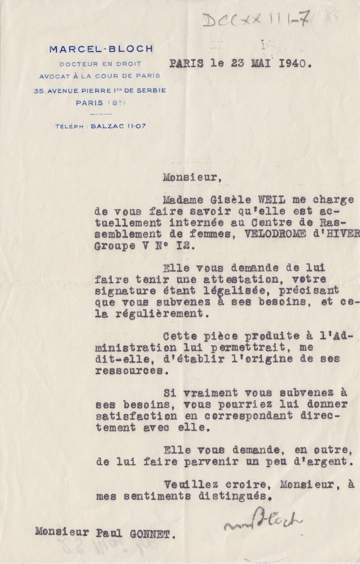 Les conditions de circulation du courrier (entrées et sorties, censure, fourniture du "papier bleu" etc) restent à établir dans un cadre où les communications sont interdites (l'interdiction des journaux est mentionnée à nouveau dans la correspondance de Gisèle Weil)